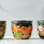 Misture a aveia, o leite e despeje no fundo de um pote de vidro. Cubra com metade da porção de manga e o coco ralado. Em seguida, coloque metade do iogurte e o restante da manga. Adicione a outra metade de iogurte e cubra com granola. Deixe descansar na geladeira de um dia para o outro.
