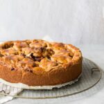 Abra a massa e forre a base e a lateral de uma fôrma de fundo removível (20 cm de diâmetro × 5 cm de altura).